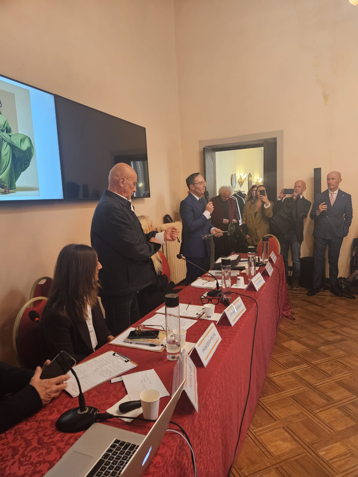 Ha scritto la storia della moda, affermando l’italianità nel mondo. Per questo e per la continua ricerca stilistica e l’artigianalità sartoriale, FISMO – Federazione Moda Confesercenti ha scelto di conferire il Premio Moda 2025 alla maison Gattinoni. L’evento è stato aperto dai saluti di Vincenzo Schiavo, Vice Presidente di Confesercenti, che ha sottolineato l’importanza dell’imprenditoria nel raccontare la moda e il made in Italy.